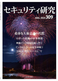 月刊セキュリティ研究8月号 (309号)発行By 事務局 / 2024/07/25 no.309cover 月刊セキュリティ研究®309号を発行しました。8月号(309)の主な寄稿は、次の通りです。 希薄な人権意識の代償 (仲野 凛) / ロボット技術の軍事利用 (久保田ようじ) / 映像データ解析技術入門③ (セキュリティ人財養成センター) / データセンターの安全対策② (セキュリティ人財養成センター) / SECURITY Info. 有力企業15 社 他